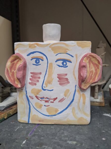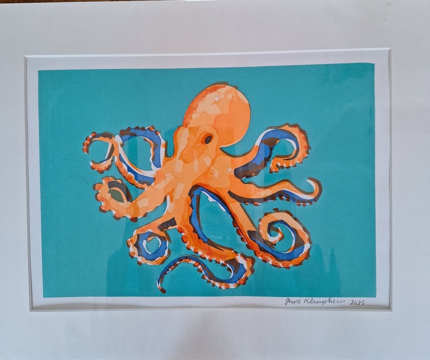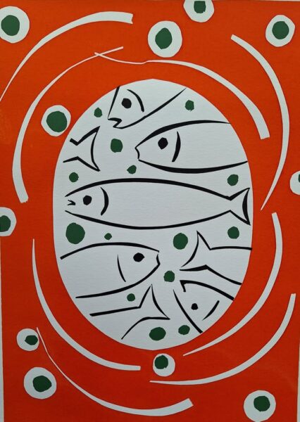 She makes portraits, still lives and landscapes and more recently she started exploring ceramics and printing. She likes exploring how ‘form’ in ceramics can meet painting in more layers moving away from ‘decoration’. She has been working on a series of sea animals in printing using paper cuts.