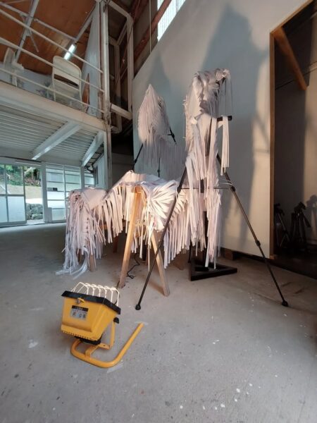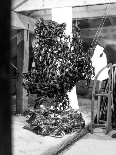 制作においては「骨まで削ぎ落とす」ような抽象性と脱美学化(ディエステティシズム)を用いながら、サイトスペシフィック性、没入性、そして一回性(再現不可能性)をあらゆる展示プロジェクトにおいて体現しています。しかしそれらは、カタルシスへと収束するものではありません。